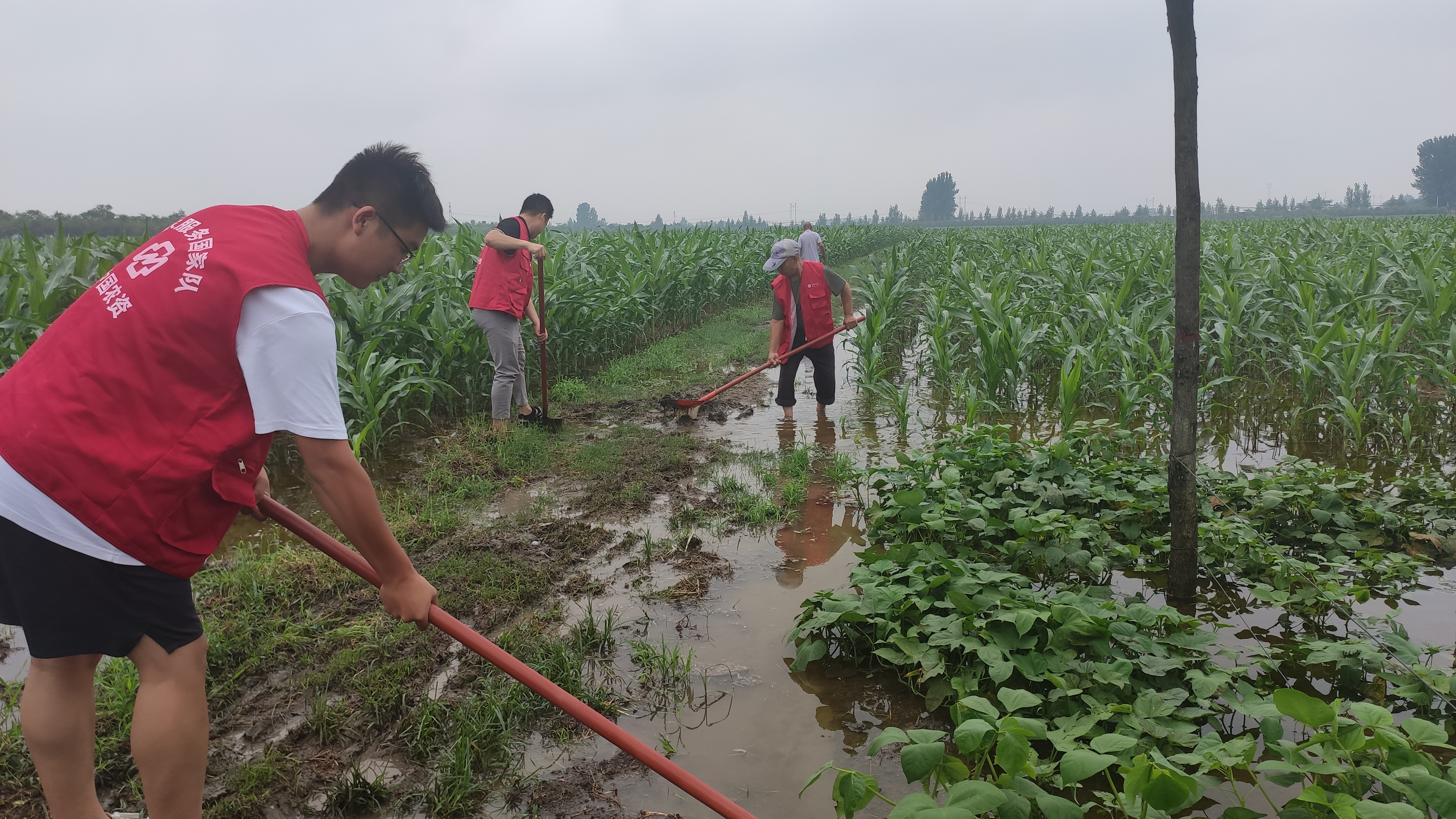 7月21日,中農控股河南平頂山寶豐服務中心第一時間組織農服人員走進田間地頭查看受災情況,面對大面積積水的玉米地,農服人員冒雨與農民一起開溝排水。