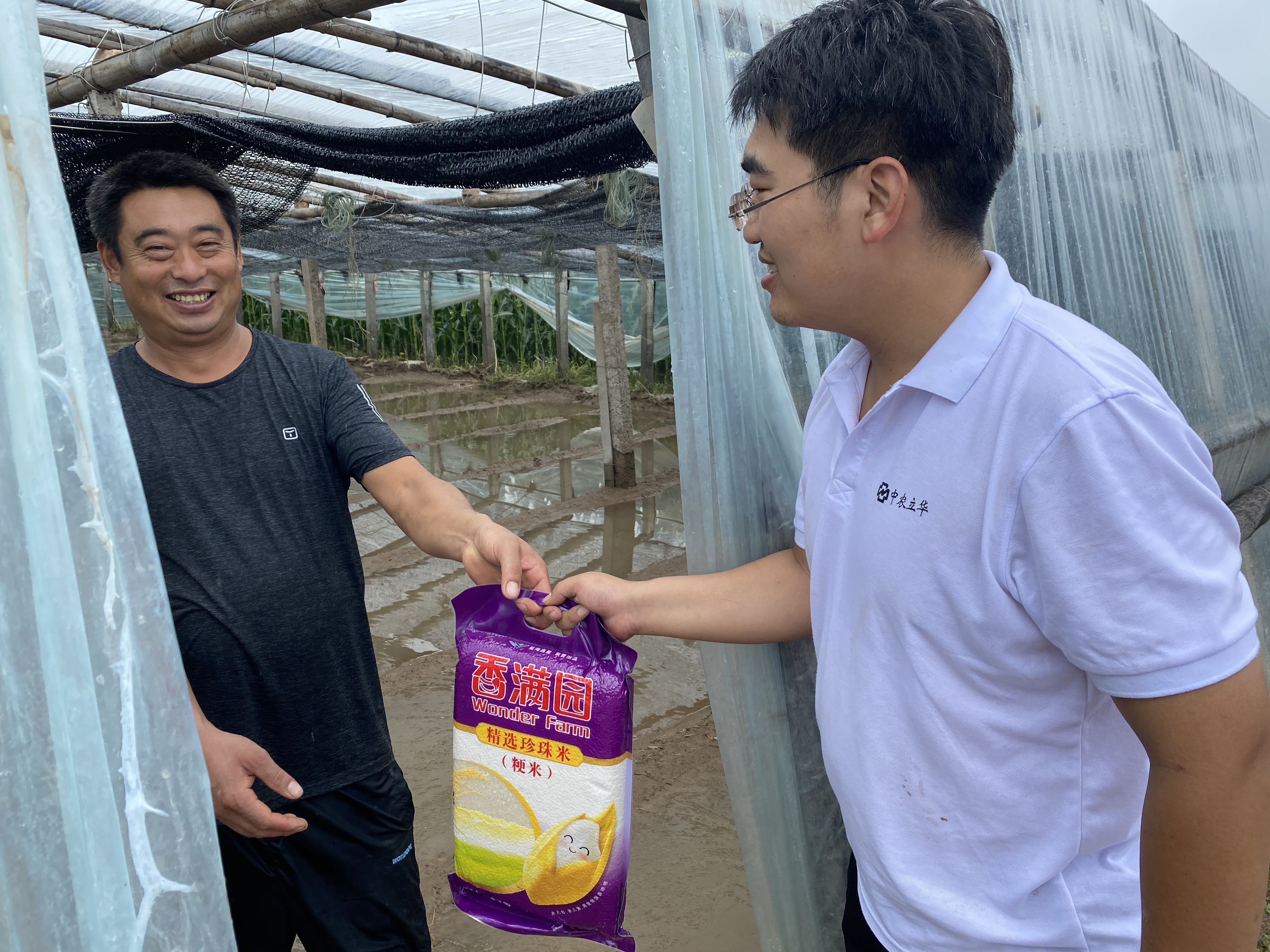 許多農戶大棚里都進了水,經歷澇災的農作物抗性普遍比正常植物低,易發病,中農立華技術團隊來到農戶棚里查看進水情況,并及時為農戶講解水災幼苗救護指導,同時針對農戶棚內進水后作物根系呼吸受阻、病害爆發引起的死苗等問題給與指導,為農戶提供根系重塑解決方案。