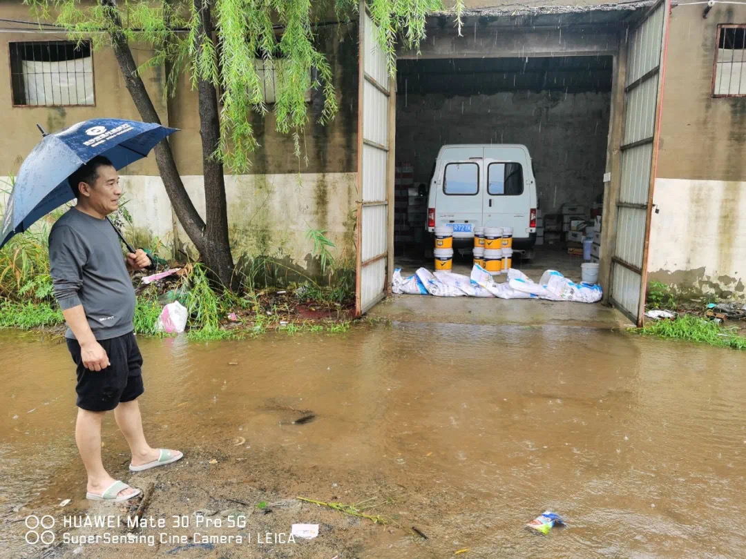 7月20日,中農立華河南團隊面對持續降雨,團隊成員緊急行動,全力以赴做好倉庫區域防汛工作,嚴防倉庫進水,確保農藥物資安全。