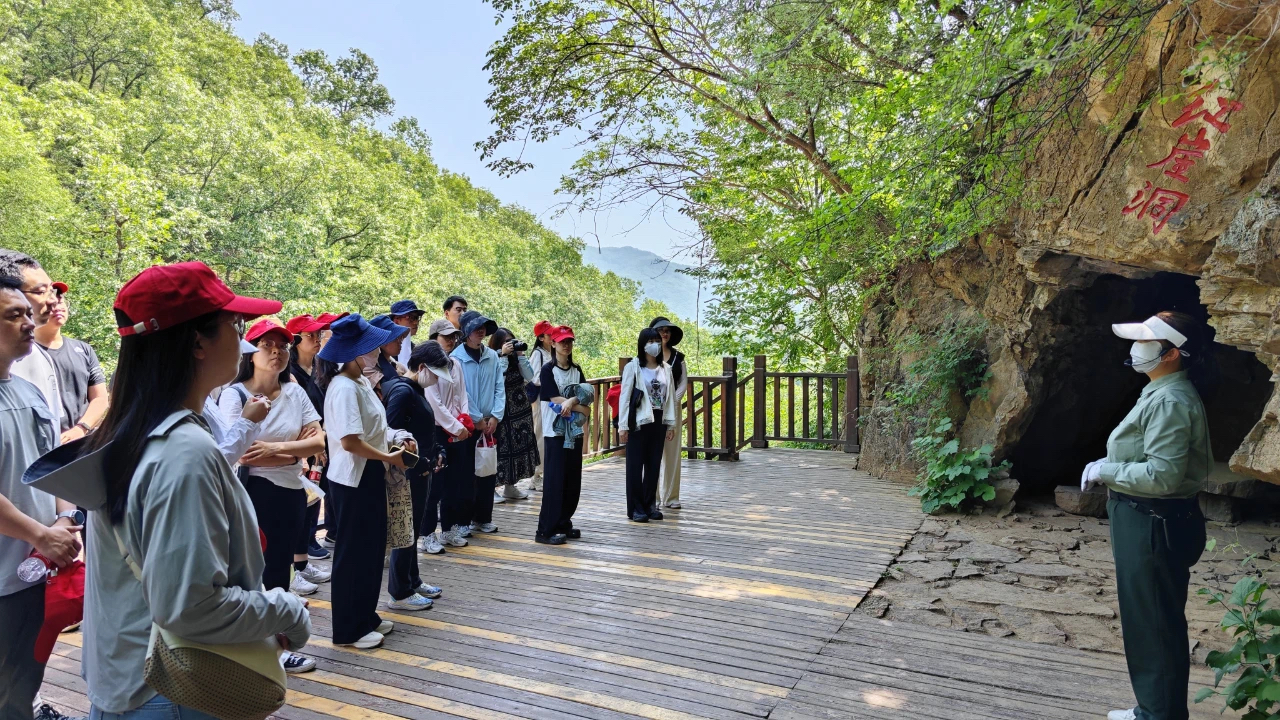 圖為參觀平谷第一個(gè)黨支部成立舊址——紅崖洞