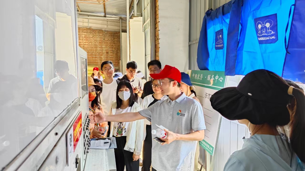 在中國(guó)農(nóng)資·(平谷)服務(wù)中心,工作人員向青年干部職工介紹平谷服務(wù)中心概況,講解臭氧消毒機(jī)、水肥一體化控制設(shè)備、數(shù)字大屏、中農(nóng)云APP、實(shí)驗(yàn)室、配肥設(shè)備、機(jī)械設(shè)備等,與青年同志們進(jìn)行交流互動(dòng)。