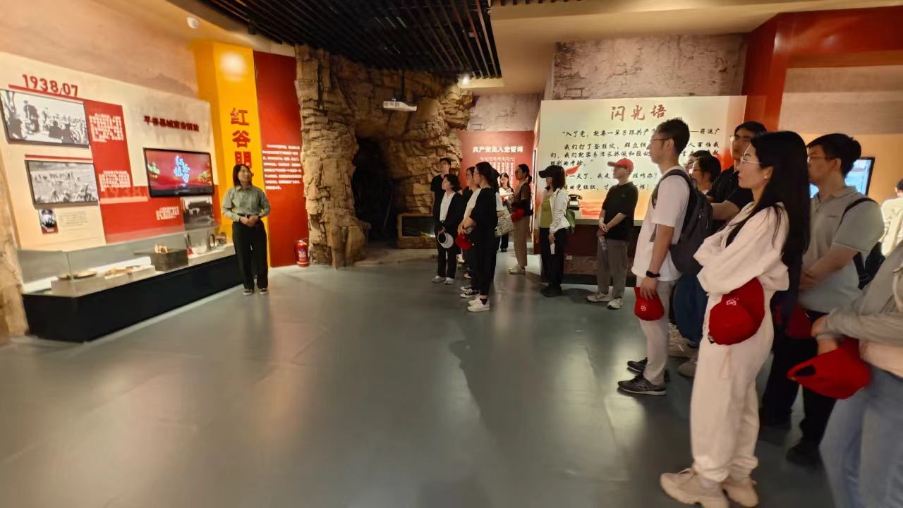 在紅谷黨員教育基地,青年干部職工參觀平谷第一個(gè)黨支部成立舊址——紅崖洞、冀東西部地分委舊址、聯(lián)合縣委縣政府舊址、公安科舊址、紅谷主題教育館,深入了解冀東西部地區(qū)的紅色革命歷史和革命先輩英勇抗戰(zhàn)的感人故事。