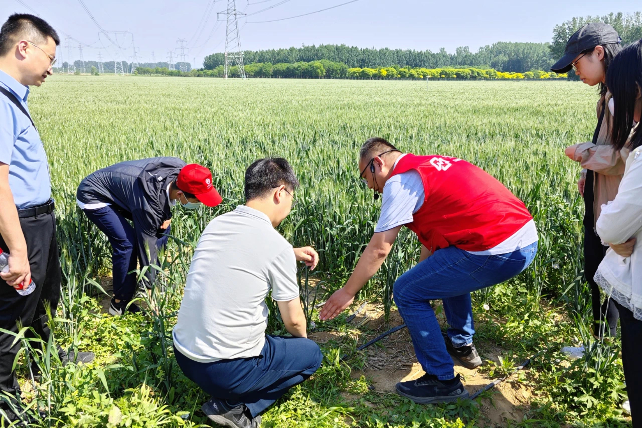 在中國(guó)農(nóng)資·(平谷)服務(wù)中心小麥基地,工作人員向青年干部職工介紹小麥單產(chǎn)提升技術(shù)集成示范基地概況,講解如何通過(guò)監(jiān)測(cè)站功能實(shí)現(xiàn)物聯(lián)網(wǎng)數(shù)據(jù)傳輸、建設(shè)智慧農(nóng)業(yè),青年干部職工參觀小麥田滴灌設(shè)施、物聯(lián)網(wǎng)監(jiān)測(cè)站等,現(xiàn)場(chǎng)學(xué)習(xí)體驗(yàn)如何辨別小麥長(zhǎng)勢(shì)、如何科學(xué)噴灑農(nóng)藥等技能。